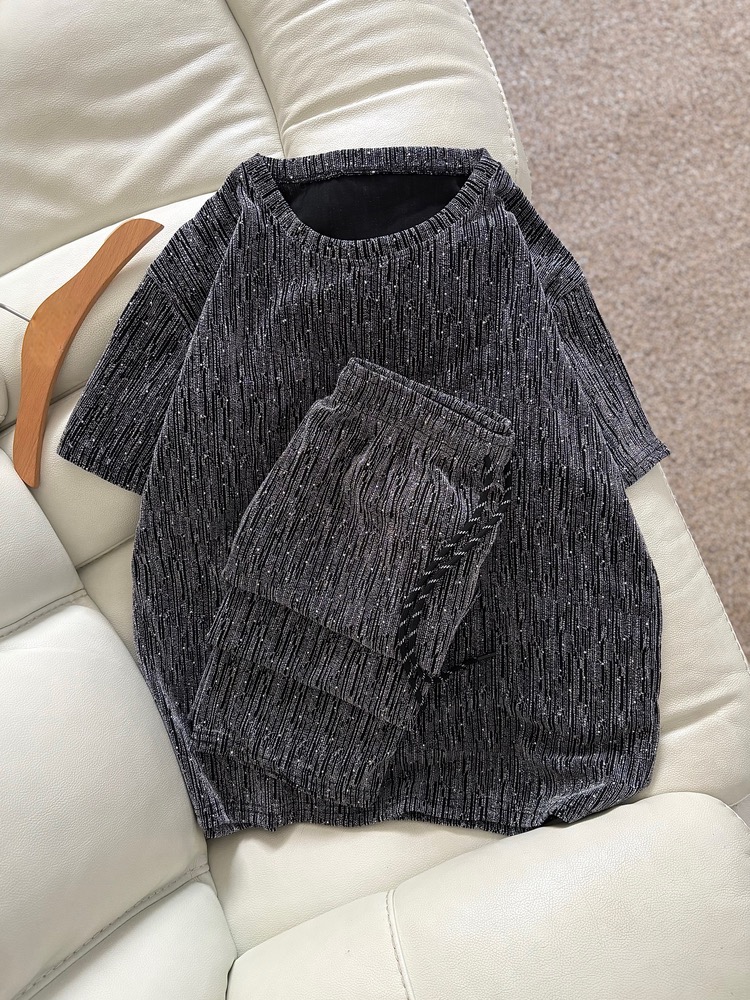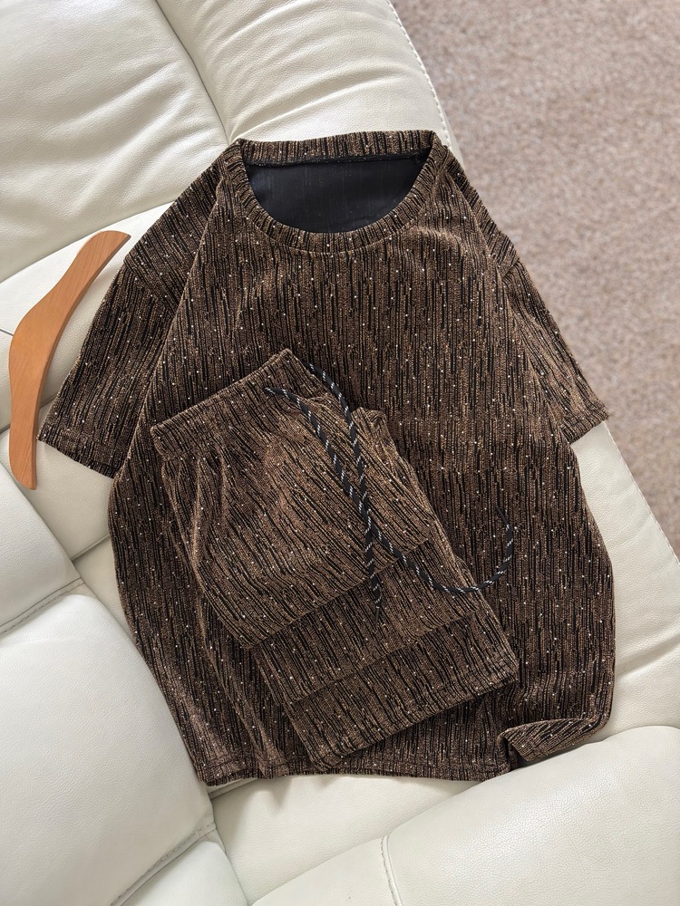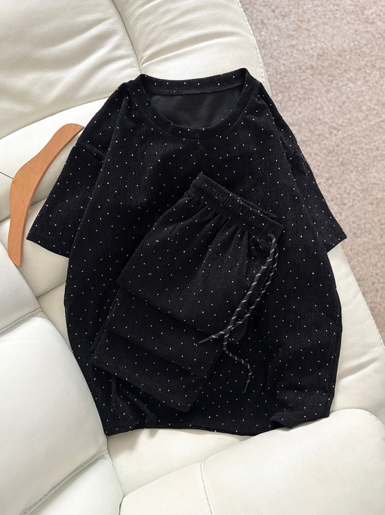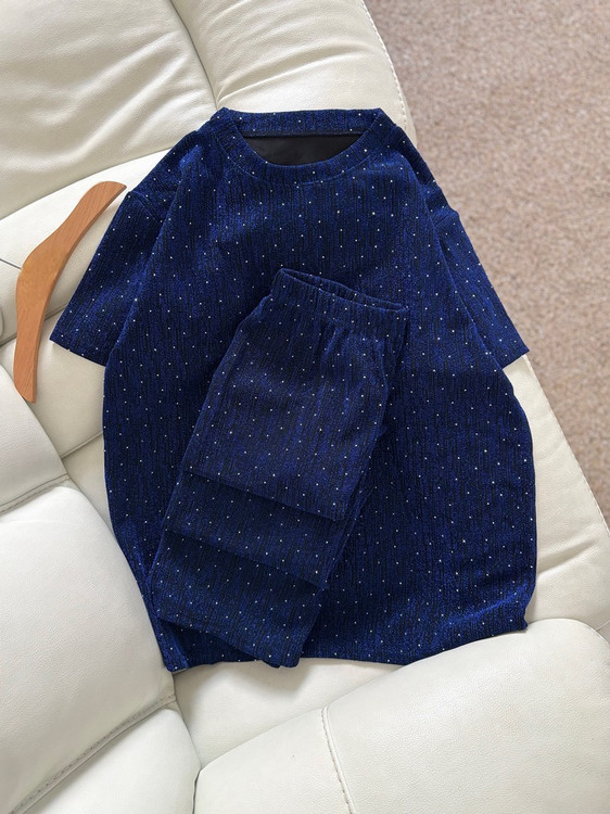 ست دوتیکه نگین دار بلوز + شلوار نیم بگ 9323-03